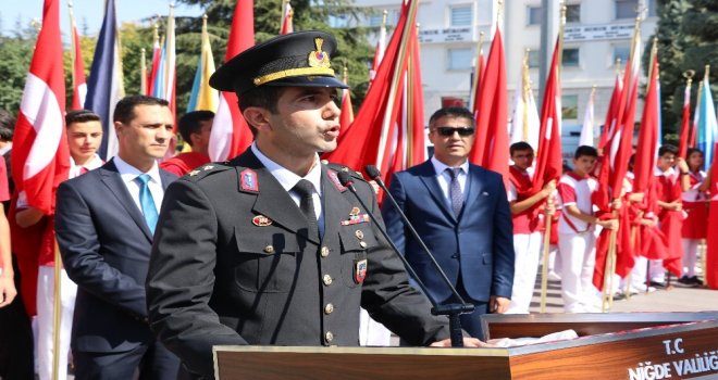 Cumhuriyet Meydanında Atatürk Anıtına çelenk sunumu ile başlayan törene Niğde Valisi Yılmaz Şimşek ve Belediye Başkanı Rifat Özkan Atatürk anıtına çelenk koydu.