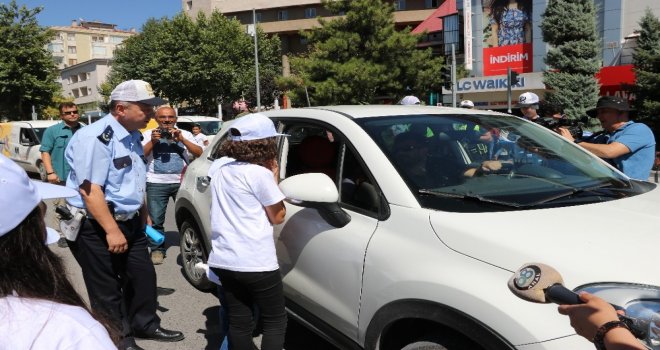Kırmızı düdüklü çocuklar Niğde Atatürk Meydanında emniyet kemeri takmayan sürücüleri kırmızı düdükle uyarıda bulundu.