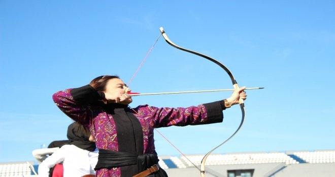Eskişehir Osmangazi Üniversitesinde (ESOGÜ) düzenlenen 3üncü Geleneksel Okçuluk yarışmasında oklar, 29 Ekim Cumhuriyet Bayramı için atıldı.