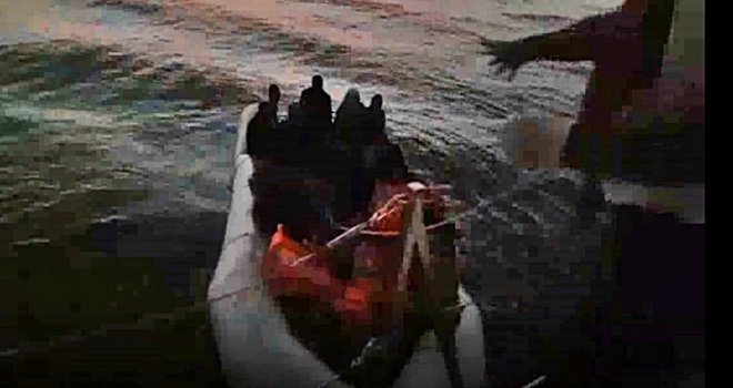 İzmirin Dikili ilçesinde aralarında kadın ve çocuklarında bulunduğu farklı uyruklu 32 göçmen yakalandı. Göçmenlerin yakalanma anıda Sahil Güvenlik Komutanlığı ekiplerinin kameralarına yansıdı.