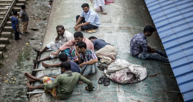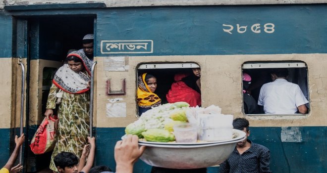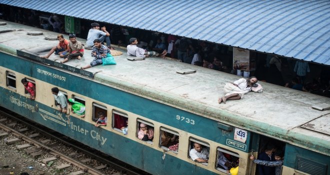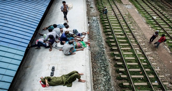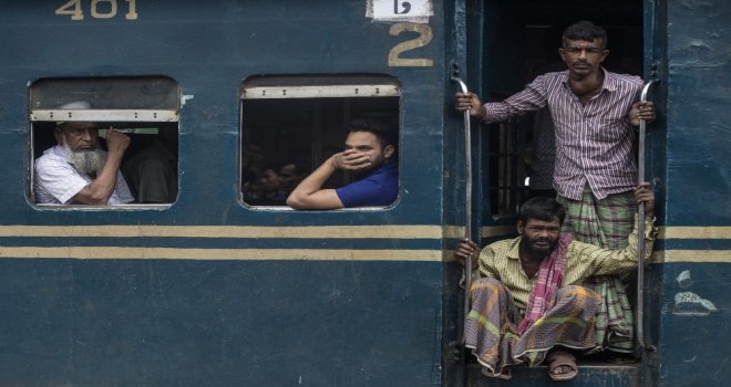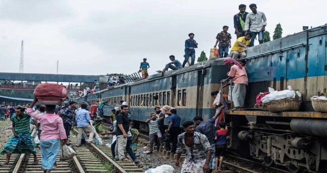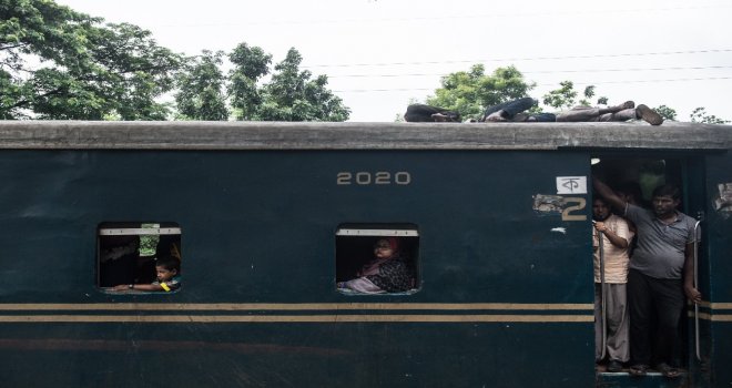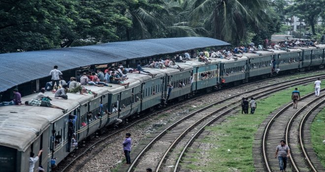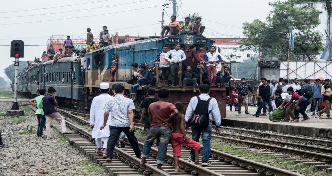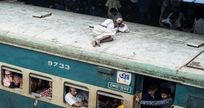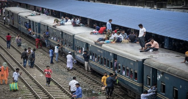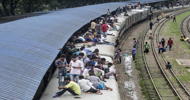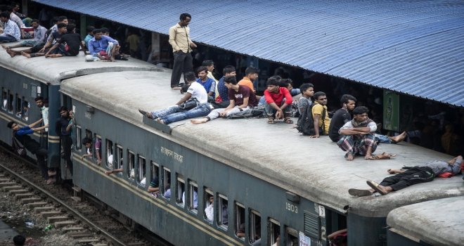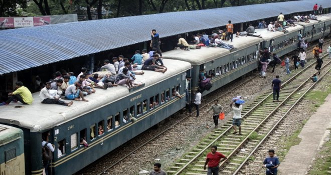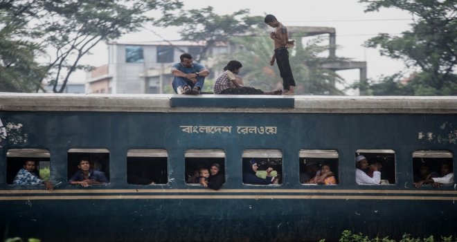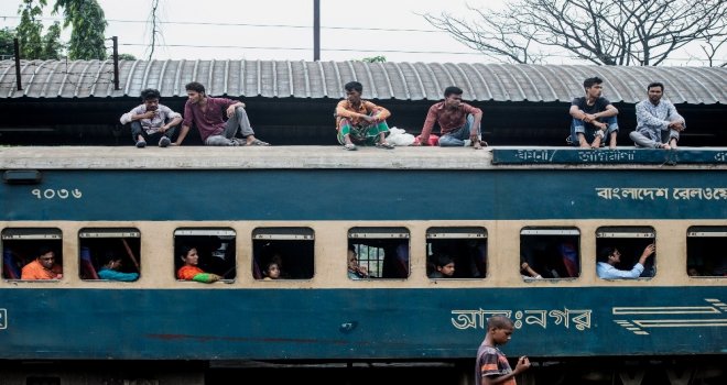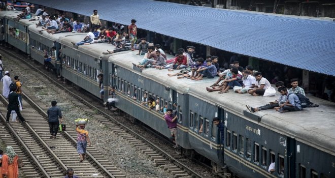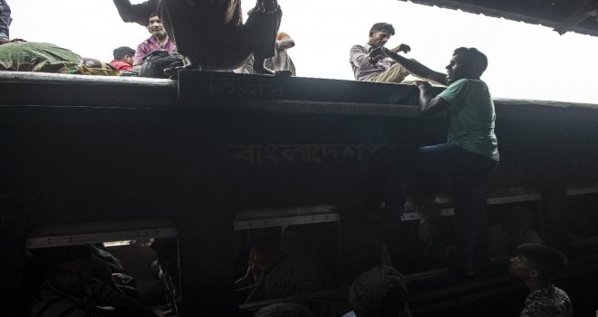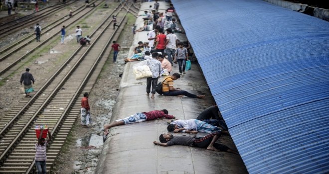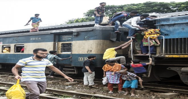 İhlas Haber Ajansı Foto Muhabiri İsmail Coşkun, Başkent Dakkada Tongi Tren Terminalinde yaşananları görüntüledi. Coşkunun çektiği görüntülerde, tren garında bekleyen binlerce Bangladeşli, trenin gelmesiyle birlikte dakikalar içerisinde dolduruyor. Trende koltuk sahibi olamayanlar ise trenin üzerine doğru tırmanıyor. Hareket eden trenin üzerindeki yolculardan bazıları uyuyarak seyahat ederken bazıları ise oturarak gidiyor.