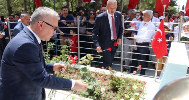 Niğde Valisi Yılmaz Şimşek, ildeki protokol üyeleriyle Bor ilçesi Çukurkuyu beldesindeki şehitlikte, Halisdemirin kabrini ziyaret etti.