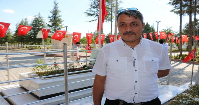 15 Temmuz darbe girişiminin millet iradesi ile önüne geçilmesinin yıl dönümünde kahraman Astsubay Ömer Halisdemirin kabrini ziyaret edenler dua edip çocuklarına Halisdemiri anlatıyor.