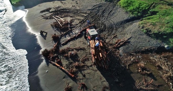 Orduda 4 gün önce etkili olan yağmur sonucu bazı ilçeler sele teslim olurken, ortaya ilginç görüntüler de çıktı. Havadan çekilen görüntülerde, durumu fırsata çeviren bazı vatandaşların kışlık yakacağını çıkartmak için sahilden odun topladığı görülüyor.
