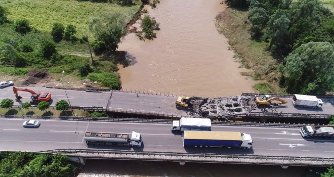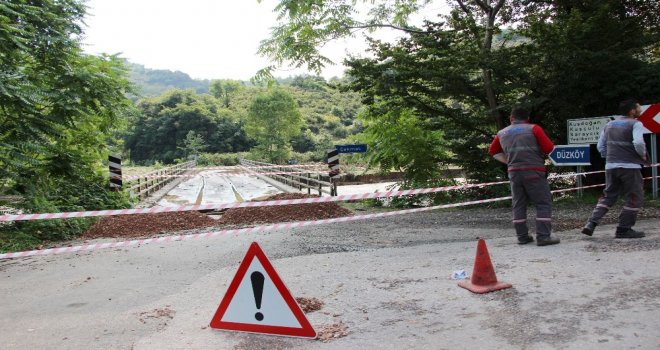 Sel felaketinin yıkıp geçtiği Orduda hasar tespit çalışmaları devam ederken, Samsun-Ordu karayolunda Cevizdere Köprüsünün yıkılmasıyla trafik tek şeritten kontrollü olarak verilmeye devam ediyor. Zarar gören köprüye bugün iş makineleriyle müdahale edildi. İş makineleri çöken köprüyü yıkmak için çalışmalarını sürdürüyor.