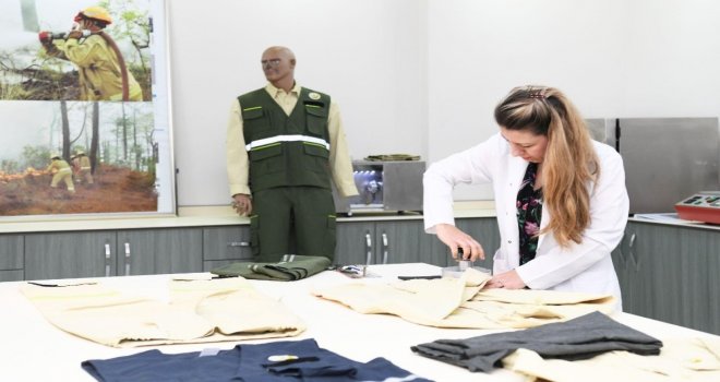 Ege Üniversitesi ile Orman Genel Müdürlüğü işbirliğinde orman yangınlarında görev alan personelin kıyafetlerinin uygunluk testleri, Ege Üniversitesi Tekstil ve Konfeksiyon Araştırma ve Uygulama Merkezi (TEKAUM) tarafından yapılıyor.