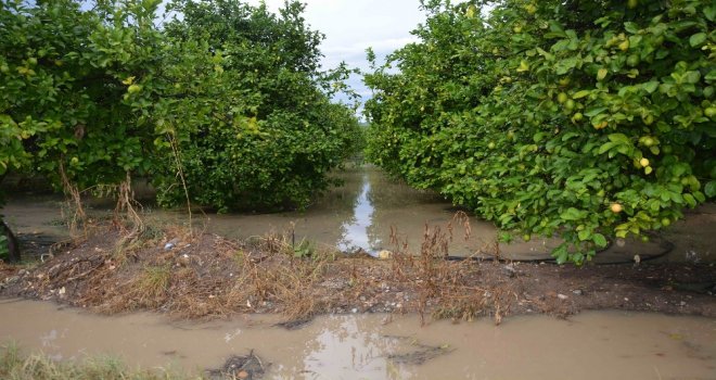 Ortacada etkili olan şiddetli yağış nedeniyle bazı ev, iş yeri, tarım arazileri ve narenciye bahçeleri sular altında kaldı.
