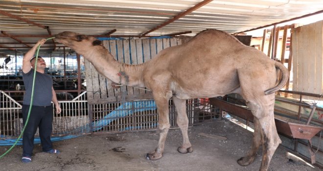 Kahramanmaraşa 4 yıl önce Suriyeden getirilen kurbanlık deve otomobil fiyatına satışa sunuldu.