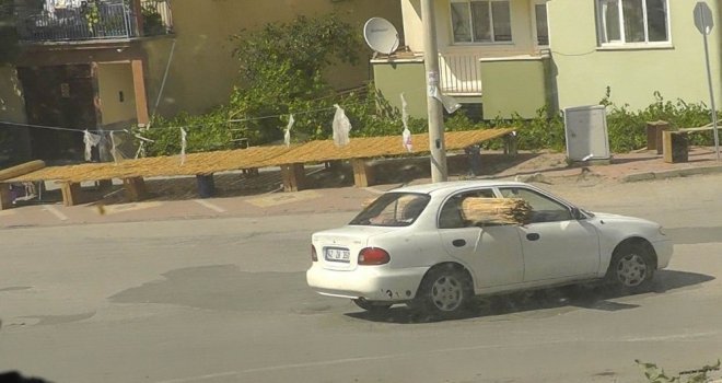 Beyşehir kent merkezinde, üzerinde tarhana kurutulan ve ilçede kargıların birleştirilmesiyle oluşturulan ilçe halkının ‘tarhana çiti olarak adlandırdığı yükü, katladıktan sonra otomobilinin arka kapı camlarını açarak yerleştiren sürücü, gideceği yere kadar trafikte bu şekilde ilerleyince ortaya ilginç görüntüler çıktı. Trafikteki manzara otomobilin arkasındaki bir araçtan çekilen görüntülerle saniye saniye kaydedildi. Kayıtlarda, otomobilin arka camlarından dışarıya uzatılan tarhana çitinin, araçla birlikte kapladığı alan sebebiyle yoldaki diğer araçlar için tehlike oluşturduğu, sürücünün bu şekilde yoluna devam ettikten sonra mahalle arasındaki sokaklarda gözlerden kaybolması görülüyor.