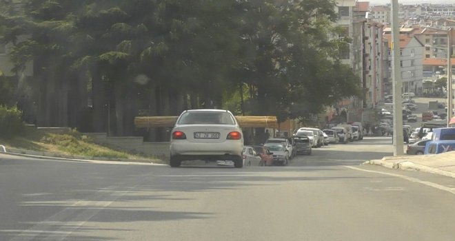 Otomobilin Camlarından Taşan Yük Görenleri Şaşırttı