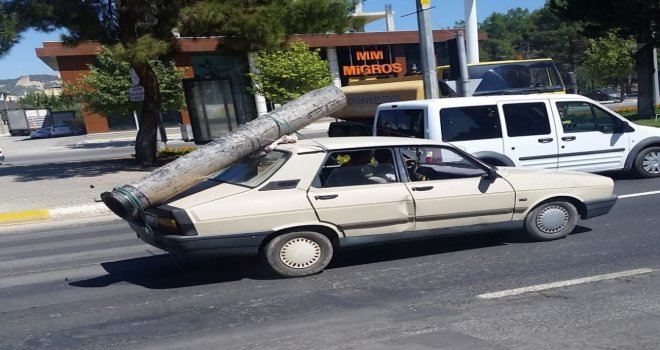 Otomobilin Üzerine Yüklenen Demir Boru Pes Dedirtti