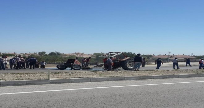 Konyanın Ereğli ilçesinde otomobille çarpışan traktör ikiye bölündü. Kazada 2 kişi yaralandı.