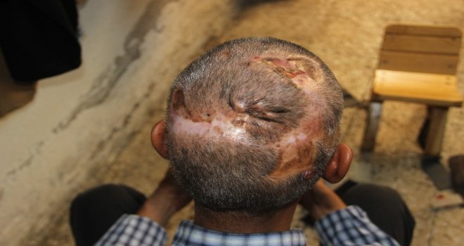 Şanlıurfada 20 yıl önce kafasına çivili zincirle vurulduktan sonra çivilerle birlikte yaşayan 43 yaşındaki terzi, tedavi için yardım bekliyor.