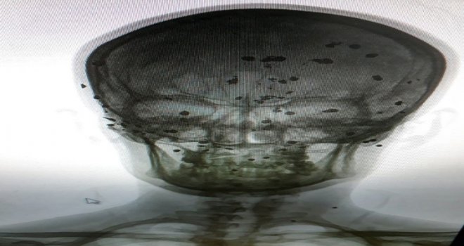 Cuma Araz, çektirdiği röntgen filmlerinde kafatasındaki saçmaların çok net göründüğünü söyledi.