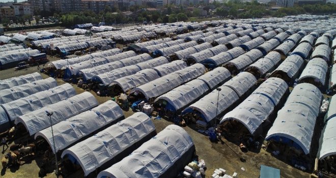 Kurban pazarının havadan çekilen görüntüsü ise adeta bir çadır kenti andırıyor.