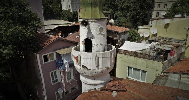 Beyoğlundaki Tarihi Sefer Kethüda (Bostaniçi) Camisinin yıkılmak üzere olan minaresi tehlikeye davetiye çıkarıyor. Çökme tehlikesiyle karşı karşıya olan minareye rağmen vatandaşlar camide ibadetlerine devam ederken minarenin son durumu havadan görüntülendi.