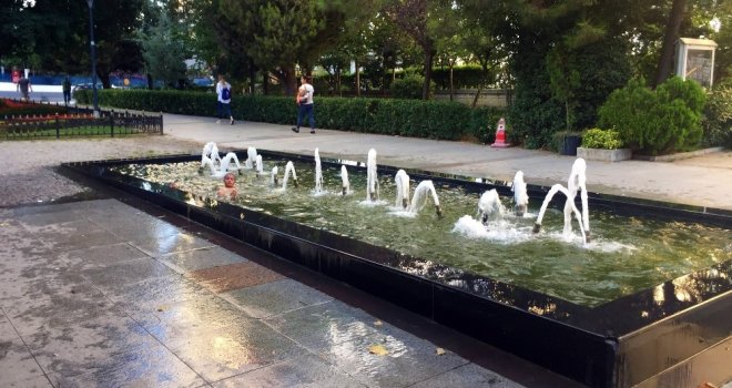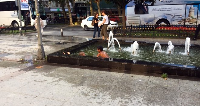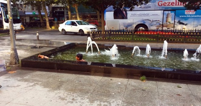Yazın İstanbulun sıcağından bunalan çocuklar soluğu süs havuzlarında alıyor. Harbiyede Cumhuriyet Caddesi üzerinde yol kenarında bulunan süs havuzuna serinlemek için giren yabancı uyruklu 3 çocuk, uyarılara aldırış etmeden havuzda yüzmeye çalıştı. Olası bir elektrik akımına aldırış etmeden suyun tadını çıkaran çocuklar birbirleriyle yarıştı. Çevreden geçen bazı vatandaşlar çocukların sudaki eğlencesini cep telefonları ile kaydederken, bazı vatandaşlar da çevrede bulunan güvenlik görevlilerine çocuklara müdahale etmeleri konusunda uyarılarda bulundu.
