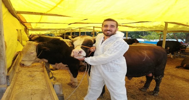 Esenyurttaki Kurbanlık Hayvan Satış Alanında ailesi ile birlikte hayvan satışı yapan stajyer Avukat Erdal Eren Rençber, görenlerin dikkatini çekiyor. Rençber, Burada olmak, burada çalışmak bana gurur veriyor dedi.