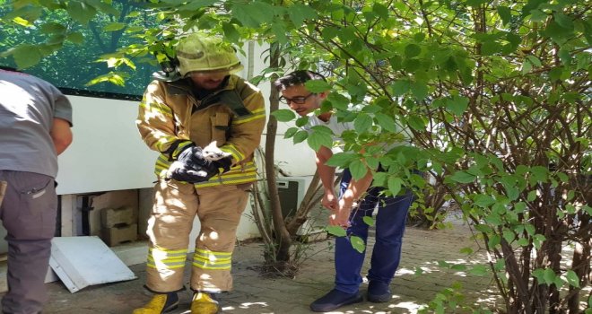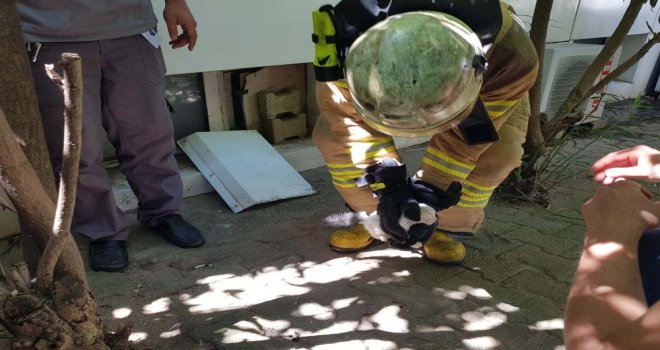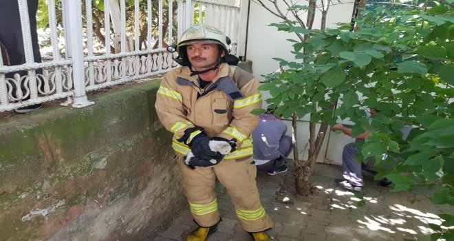Sultanbeylide gittikleri hastanenin arka tarafında bir kedinin sıkıştığını fark eden çift, itfaiye ekiplerince kurtarılan yavru kediyi sahiplendi.