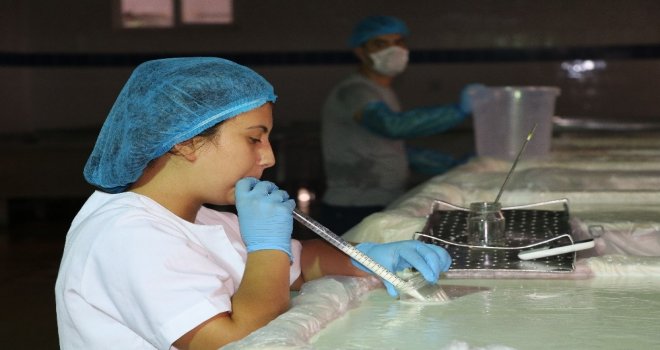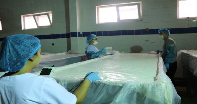 Ezine peyniri yapımında kullanılan sütün yağ oranının yüksek olması gerektiğini ve bu sayede ürünün de lezzetli olduğunu kaydeden Özcan, “Nasıl bir süt alıyoruz? 6.40, ya da 6.70 PH değeri olmayan bir sütü kesinlikle almıyoruz. Müstahsilimizi uyarıyoruz ve bu aralıkta olan bir sütü almıyoruz. İşletmemizde teknik personelimizle birlikte sütün antibiyotiğine, PHına, tuz ve yağ oranına bakıyoruz. Bunlar doğrultusunda üretim yapıyoruz. Yani yağ oranı bizim olmazsa olmazlarımızdandır. Yağ oranı yüksek olursa bizim için daha güzeldir. Vatandaşımıza sunduğumuzda memnun kalacaktı. Yağ oranı yüksek olmaz ise peynir de peynir gibi olmaz. Ezine peynirinin de özelliği olmaz” açıklamasında bulundu.
