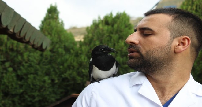 (Özel Haber) Saksağan Kendisini Tedavi Eden Veterinerden Ayrılamıyor