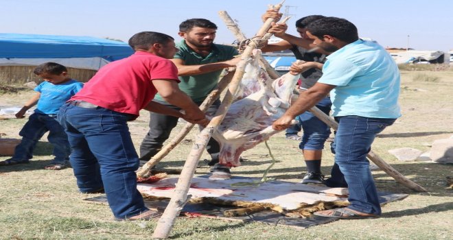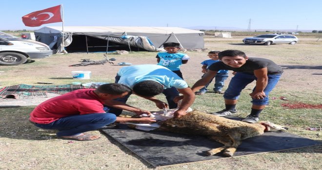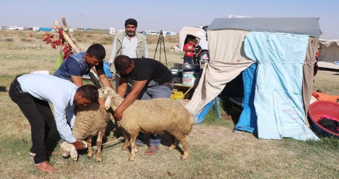 Nüfusunun yüzde 80inin tarım ve hayvancılıktan geçimin sağladığı ve her yıl 15 bine yakın tarım işçisinin istihdam ettiği Aksarayda tarlalarda çalışan Şanlıurfalı tarım işçileri kaldıkları çadır kentte kurbanlarını kesti.