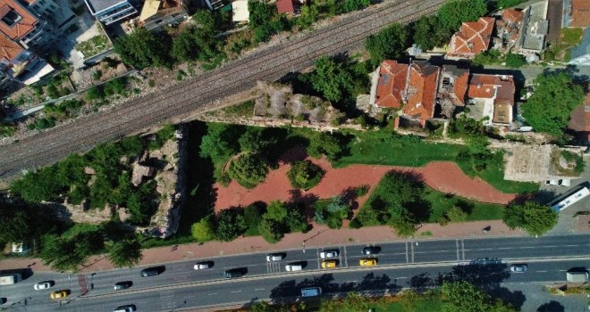 Bitki örtüsüyle kaplanan İstanbulun tarihi yarımada içindeki 1610 yaşındaki Boukoleon Sarayı, restorasyon projesinin tamamlanmasıyla Açık Hava Müzesi olarak vatandaşların ziyaretine açılacak. Bitki örtüsüyle kaplanan sarayın son durumu havadan görüntülendi.