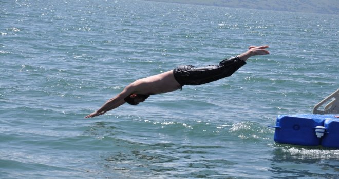 (Özel) Karsta Sıcaktan Bunalanlar Çıldır Gölünde Serinliyor