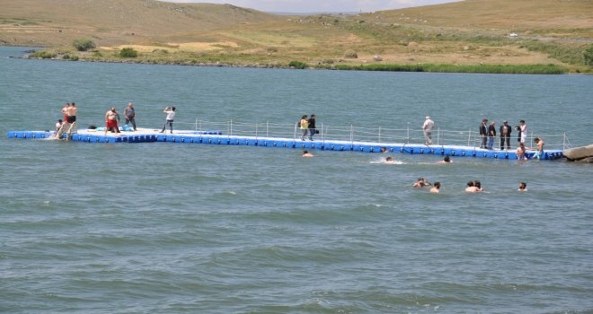 Karsta sıcak havadan bunalanlar soluğu Çıldır Gölünde alıyor. Serinlemek için Çıldır Gölüne giren vatandaşlar saatlerce suda kalıyor.