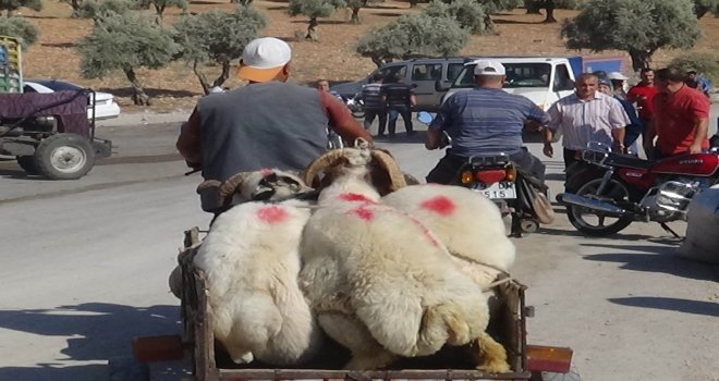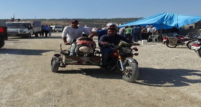 Kiliste kurbanlıkların motosikletlerle taşınması ilginç görüntüler oluşturuyor.