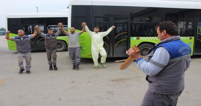 Kocaeli Büyükşehir Belediyesi bünyesindeki halk otobüslerinin bakımını yapan işçiler, 13 saatlik mesainin stresini, kemençe çalıp şarkı söyleyerek atıyor.