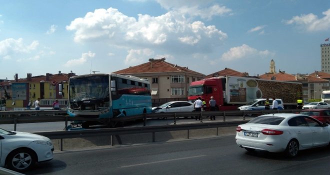 (Özel) Özel Halk Otobüsü Bariyerlere Çıktı, Faciadan Dönüldü