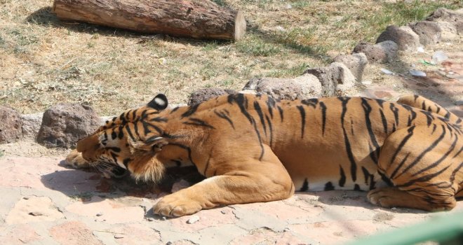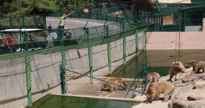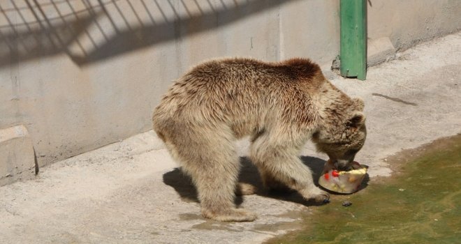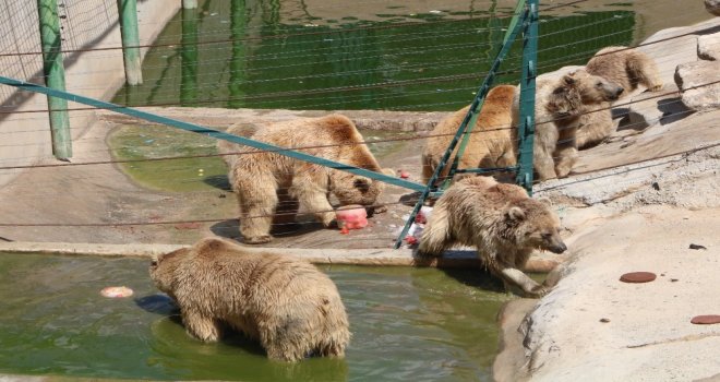 Türkiyenin en büyük, Avrupanın ise ikinci büyük hayvanat bahçesi olan Gaziantep Hayvanat Bahçesinde sıcaktan bunalan hayvanlara serinlemeleri için buzlu et ve buzlu meyve kokteylleri veriliyor.