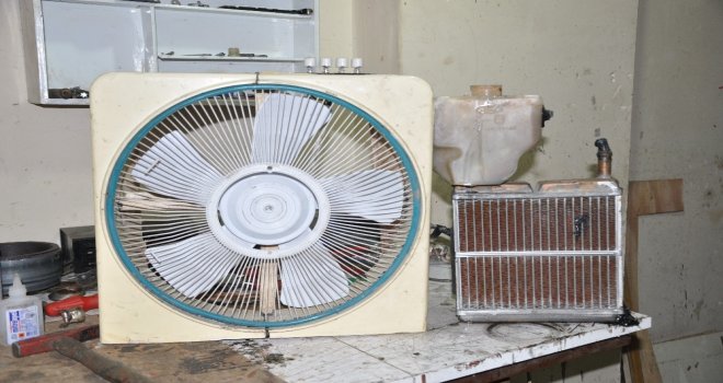 (Özel) Sıcaktan Bunaldı, Otomobil Radyatörüyle Vantilatörü Birleştirerek Klima Yaptı