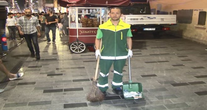 (Özel) Taksimde Temizlik İşçisinden İnsanlık Dersi