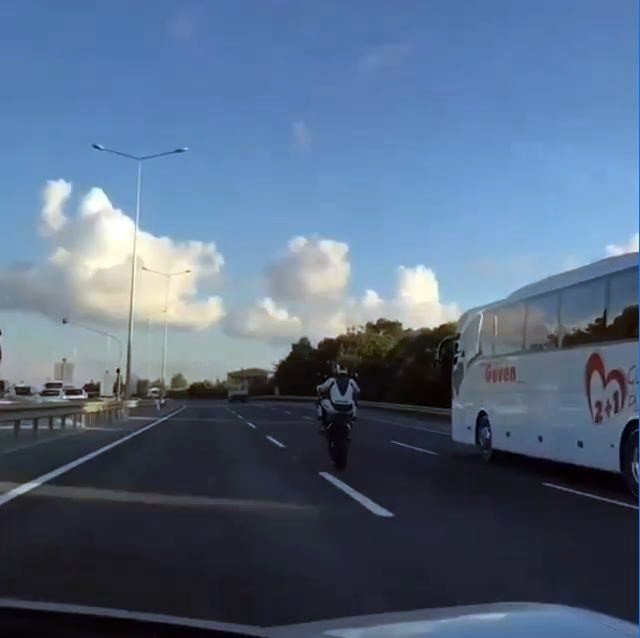 Eyüpsultan Hasdal - Kemerburgaz yolunda önceki gün saat 19.00 sıralarında seyir halinde olan motosikletli genç, trafikte akan araçların arasında tehlikeli bir şov gerçekleştirdi. Süratli bir şeklide giderken motorun tek tekerleğini kaldıran sürücü, yoluna bu şekilde devam etti. Bir süre bu şekilde yoluna devam eden gence arkasından gelen lüks otomobilin sürücüsü selektör yaptı. Bunun üzerine tek teker üzerinden inerek kırmızı ışıkta duran genç, otomobildeki Ekrem Okumuşa bakarak, “Kalkıyor muyuz” dedi. O esnada şoför koltuğunda Acun Ilıcalıyı fark gören genç şoke oldu.