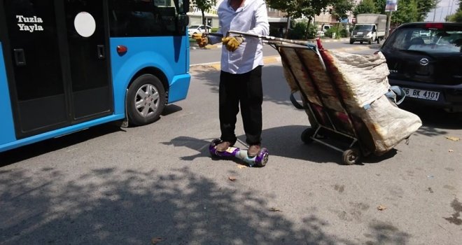 Tuzlada bir kağıt toplayıcısı, işini kolaylaştırmak için ilginç bir yönteme başvurdu. Gün boyunca İstanbulun Anadolu Yakasında neredeyse tüm ilçeleri dolaşarak kağıt toplayan vatandaş, daha az yorulmak için teknolojiye ayak uydurdu. Kağıtlarını hoverboard (Elektrikli kaykay) ile toplayan vatandaş görenleri hayrete düşürdü. İşini kolaylaştıran kağıt toplayıcısı, bu sayede daha çok dolaşarak daha az yoruluyor.