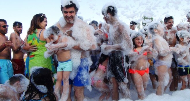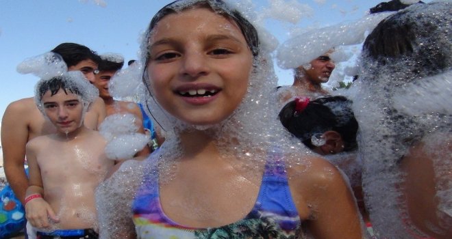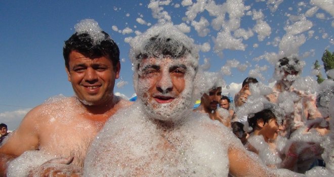 Vanın Edremit ilçesinde 4 yıl önce kurulan beachte vatandaşlar köpük partisinin keyfini yaşıyor.