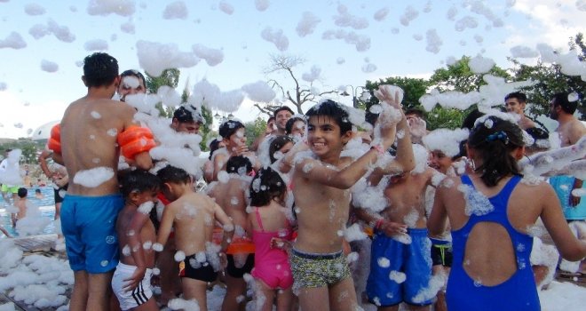 İlk defa köpük partisi ile karşılaştıklarını ifade eden çocuklar ise çok keyif aldıklarını söyledi.
