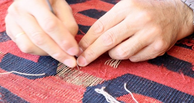 33 yıllık halı restorasyon ustası olan Fevzi Solak (44), Sultanhanı ilçesinin halı hastanesi olduğunu belirterek, “Ben bu mesleğe 1983 yılında başladım. Yaklaşık 33 yıldır bu mesleğin içerisindeyim. Burada bizim işimiz eski, tarihi değerlerimiz olan halılarımızı, kültürümüzü tekrardan kullanılabilir hale getirmek. Onları restore ediyoruz ve onarıyoruz. Burası halı restorasyon merkezi. Burada tarihi halıları, kilimleri restore ediyoruz. Yeniden tekrardan hayata döndürüyoruz. Bir nevi burası halı hastanesi. Yaptığım halıların sayısını hatırlamıyorum ama buraya Dolmabahçenin, Milli Sarayların halıları burada restore edildi. Çankaya Köşkünün, Başbakanlığın halıları burada onarıldı. İngiltere Kraliyet Sarayının halıları geldi ve burada restore edildi. Atatürkün Dolmabahçe Sarayındaki odasındaki halı da burada restore edildi. İstanbul Valiliğinden bir halı geldi. Abdülhamit Hanın resminin de üzerinde bulunduğu bir halıydı. Yaklaşık 150 yıllık bir halı. O halı da yaklaşık 77 ay çalışmamız sonucu burada yapılarak tekrar İstanbul Valiliğine teslim ettik” dedi.