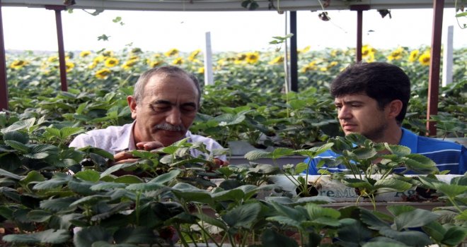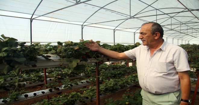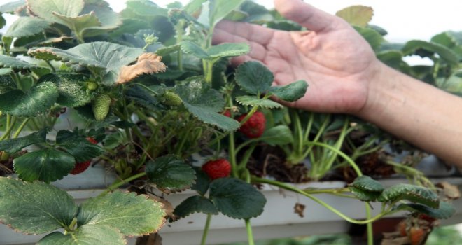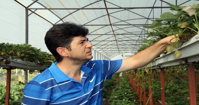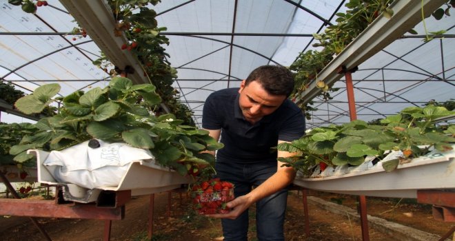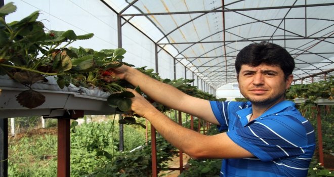 (Özel)Turizm Sektörünü Bıraktı, Memleketinde Toprak Kullanmadan Çilek Yetiştiriyor