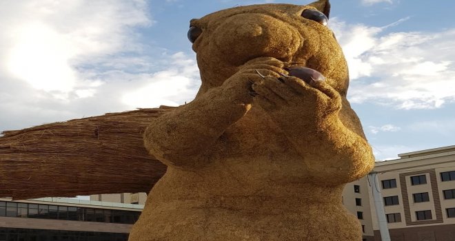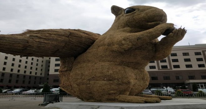 Kazakistanın Almatı şehrinde Sanat Enerjisi Festivali kapsamında dikilen 12 metre boyunda sincap heykelinin maliyeti Kazak halkının tepkisine sebep oldu.