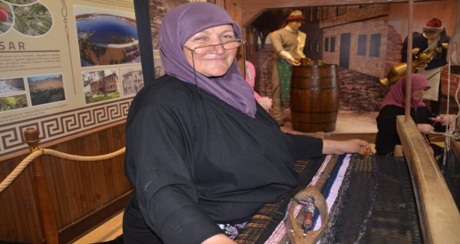 Pala kilim dokuma tezgahında çaput ve iplikten kilim dokuyan Bilecikin Pazaryeri ilçesine bağlı Sarıdayı köyünde yaşayan Arife Kurt, 50 yıldır dokuma yaptığı anlattı. 5 yıldır da tezgah başına oturmadığını sözlerine ekleyen Kurt, Ben bu mesleği annemden öğrendim. Annem 91 yaşında vefat etti bununla geçti zamanı. Ben de ondan öğrendim ve 50 sene yaptım bu işi. Eski kıyafetlerimizi kesip top haline getiriyoruz. Oradan bu masuraya sarıyoruz bunları, sonra bu mekikle atıyoruz. Böyle meydana geliyor. Kilim bir günde yapılır 3 metre 4 metre kaç metre istiyorsa. 5 metre bir günde olur. Biz de bu geleneği burada yaşatmaya çalışıyoruz. Onun için geldik. Müzeye gelenler çok ilgi gösterdiler bize dedi.