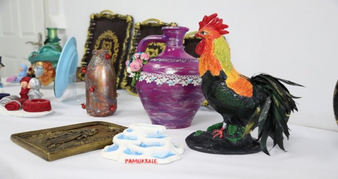 Engelliler Üretiyor; Turizme Katkı Sağlıyor projesi kapsamındaki kurslar Pamukkale Belediyesinin Atatürk Caddesindeki ek binasında gerçekleşiyor. Kurslara 10 ortopedik engelli, 8 işitme engelli vatandaş katılıyor. Kursiyerler halk eğitim bünyesinde görevli Fatma Yıldırım ve Derya Şimşekin eğitmenliğinde dekoratif şişe, ahşap boyama, tabak boyama, seramik, polyester boyama, keçe yapımı, takı tasarım, kokulu taş gibi ürünlerin yapımını öğreniyor. Kursiyerlerden Leyla Acar, Ayşegül Şahin, Havva Erbasan Atik, Elif Karabacak, Dilek Dağ ve Muhammet Musa Kaçan, Biz evde oturan engelli bireylerdik. Şu anda çöp denebilecek her şeyi değerlendiriyoruz. Burada birçoğumuzun eli tam olarak işlevsel değil, ama birbirimize yardımcı oluyoruz. Çok güzel hediyelik eşyalar ortaya çıkarıyoruz. Pamukkale Belediyesinin kurslarıyla öğrendiklerimizi ilerde de yapabileceğiz. Öğretmenlerimize ve tabi ki Pamukkale Belediye Başkanımız Hüseyin Gürlesine çok teşekkür ediyoruz diye konuştu.