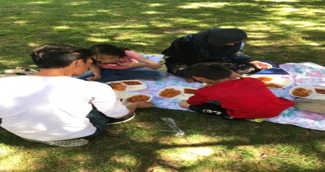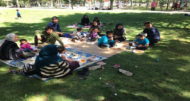 Kayseri Beşir Derneği tarafından dağıtılan yemekleri yiyen 17 Afgan aile, Mevlana Parkına gelen servislerle alınarak misafirhanelere yerleştirildi.