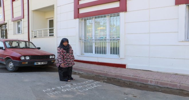 Sivasta 4 katlı apartmanın giriş katında yaşayan Saliha Polatlıgil penceresinin önüne park edilen araçlar yüzünden karanlıkta oturmak zorunda kalınca tepkisini sokağa yazdığı yazıyla gösterdi.