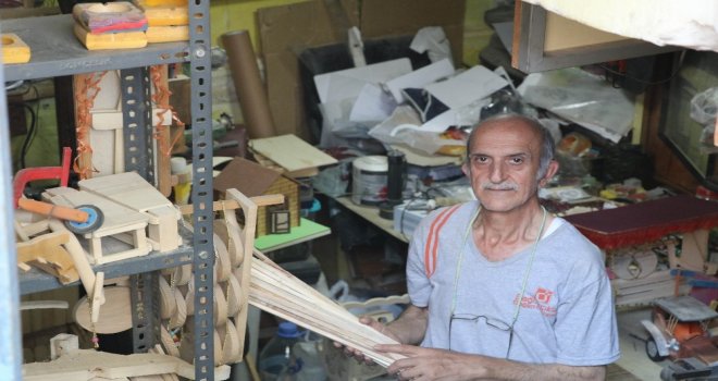 Kahramanmaraşta 65 yaşındaki emekli öğretmen Kurtuluş Kesim, öğretmenlik döneminde hobi olarak yaptığı ahşaptan oyuncak tasarım işini geliştirerek atölyesini kurdu. Kurtuluş Kesim, geçmişte çocukların oynadıkları ahşap oyuncakları, günümüzün plastik oyuncaklarına inat yeniden canlandırıyor.