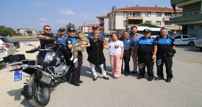 Düzce İl Emniyet Müdürlüğü ekipleri, SMA hastası olan 7 yaşında ki Emirkan Acarın hayalini gerçekleştirdi. Küçük çocuk polis motosikleti ve polis aracına bindirildi.