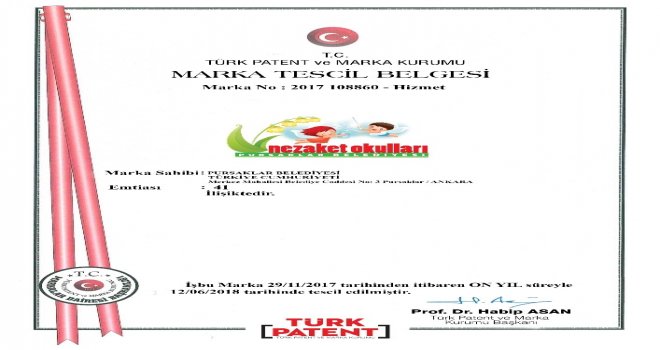 Pursaklar Belediyesine teslim edilen belgelerde, “Markaların Korunması Hakkında 556 Sayılı Kanun Hükmünde Kararnameye göre 29 Kasım 2017 tarihinden itibaren 10 yıl süreyle 12 Haziran 2018 tarihinde tescil edilmiştir” ifadesi yer aldı.