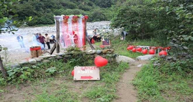 Çiftin nikahı dere kenarında Ardeşen Belediye Başkanı Hakan Gültekin tarafından kıyıldı. Çiftin nikah şahitliğini, Dünya Rafting Federasyonu (WRF) İkinci Başkanı ve Türkiye Rafting Federasyon Başkanı Fikret Yardımcı ile milli takım antrenörü Erdoğan Buçan yaptı.